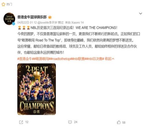 下赛季的CBA,未必能看到四川队了,多家NBL球队都在等着替掉他们的位置,比如前两天才完成三连冠壮举的香港金牛。