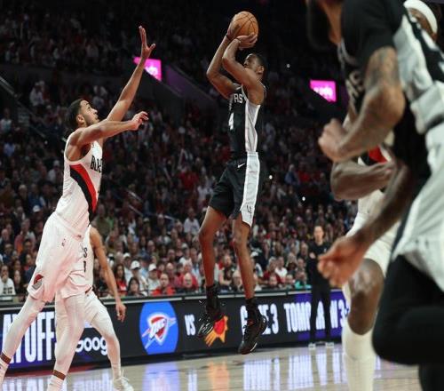 次节赛场攻防节奏全面提速,两队进攻火力同步升级,单节双双斩获30+得分。马刺率先发起猛攻,一口气连拿7分,完成比分反超并建立5分领先。开拓者迅速做出回应,全力反扑缩小分差,将分差迫近至2分。此后卡斯尔与福克斯联手带队发力,帮助马刺打出优势,以41-35拉开比分。绝境之下开拓者迎来爆发,亨德森持续攻坚、连续得分,带队掀起一波15-2的进攻狂潮,不仅抹平分差,还反超7分,将马刺压制至48-58落后。节末马刺及时回暖展开反扑追分,但没能完成逆转,单节以32-36不敌开拓者。上半场收官,马刺59-65落后开拓者6分。半场数据统计,马刺三分19中8,卡斯尔累计拿到19分,福克斯斩获10分4篮板4助攻的全面数据;开拓者三分21中10,霍勒迪拿下17分,亨德森入账14分,阿夫迪亚8投1中得到11分。