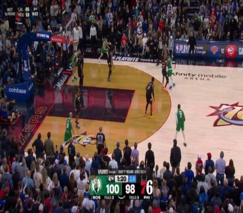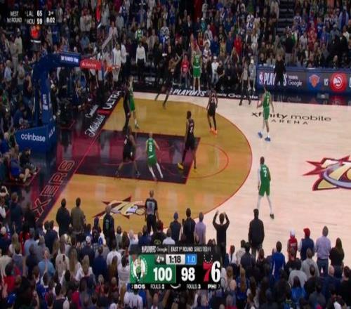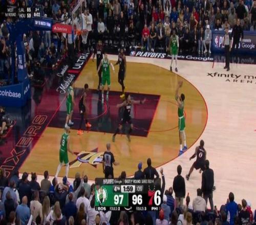 ——剩下1分17秒前,乔治回应了一记上篮后,塔图姆助攻普里查德三分,领先5分