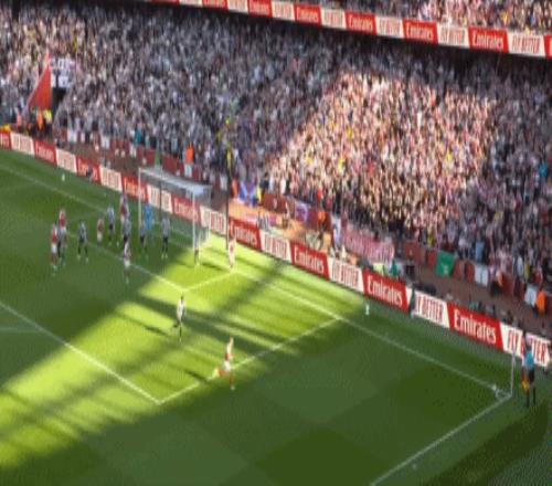 第9分钟,马杜埃凯开出战术角球,哈弗茨禁区内回敲,埃泽跟上打出世界波,直挂球门左上角,阿森纳打破僵局,1-0!