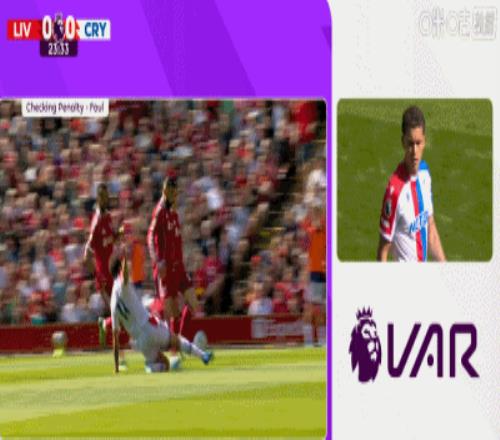 第24分钟,布伦南禁区线附近放铲萨拉赫,主裁判经VAR确认没有点球