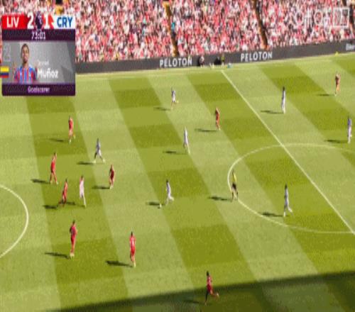 第72分钟,伍德曼受伤倒地,穆尼奥斯吊射空门得手,水晶宫1-2利物浦!