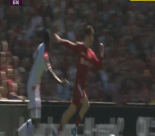 第24分钟,索博斯洛伊前场直传,萨拉赫带球突破,被约翰逊放倒在地,刚开始裁判判罚点球,但随后回看VAR确认约翰逊铲到球在先,又取消点球的判罚。
