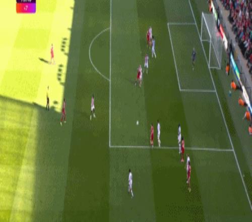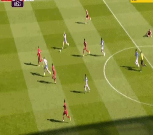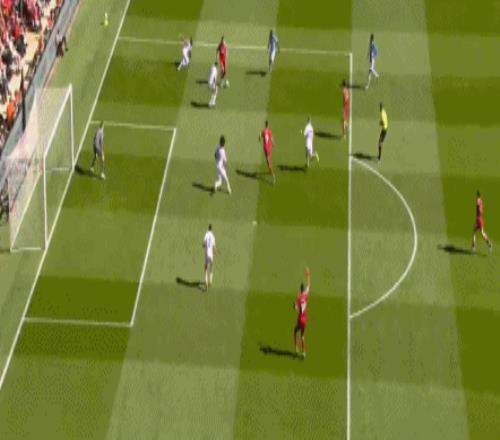 第11分钟,拉克鲁瓦右路回传,沃顿禁区前沿45°传中,理查兹插上头槌攻门,没能顶在球门范围内,利物浦逃过一劫。