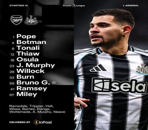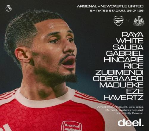 阿森纳vs纽卡:哈弗茨、埃泽首发,萨卡、哲凯赖什替补