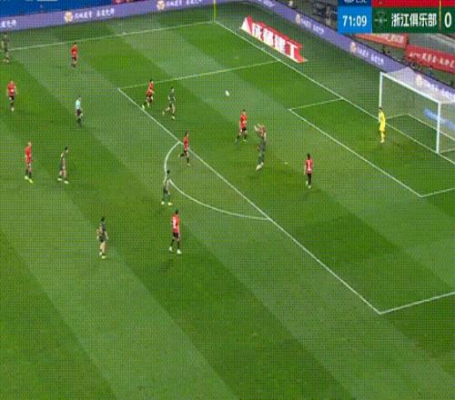 第72分钟,陶强龙禁区外侧扣球射门,可惜角度有点偏。