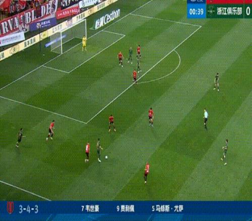 第39分钟,贺一然边路传中,韦世豪中路包抄轻松推射破门,成都蓉城改写比分到3-0。
