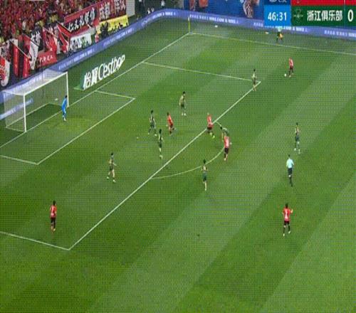 第47分钟,韦林顿·席尔瓦大脚传到禁区,贺一然俯身冲顶攻门稍稍偏出。
