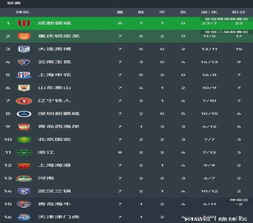 1、成都蓉城取得5连胜,总成绩7胜1平保持不败,积22分暂以5分优势领跑积分榜。