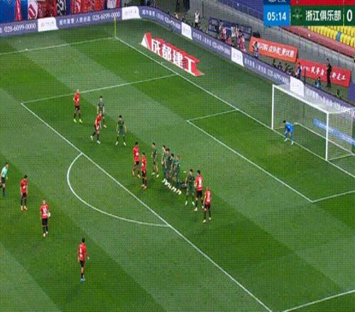 第6分钟,成都蓉城前场定位球,罗慕洛主罚直接射门稍稍高出。