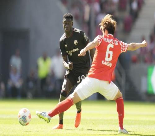事实也证明,对于只有不到半小时职业比赛经验的恩迪亚耶来说,面对以凶狠逼抢和快速转换著称的美因茨确实不是那么容易,尤其是在这个连一帮老大哥也踢得异常狼狈的上半场。在“德甲第一恶人”多米尼克·科尔利用角球机会首开纪录之后,美因茨便连续通过抢断后的快速转换制造杀机,恩迪亚耶先是在前场右肋拿球后试图摆脱佐野海舟时被抢断,接着又在右肋直传时被科尔抢在准备接球的雅克松之前断球。