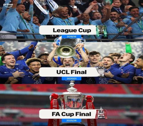 2025-26赛季足总杯决赛,切尔西和曼城将争夺冠军,这将是两队第三次在主要赛事决赛中相遇,此前两次决赛交手,两队各取一胜。