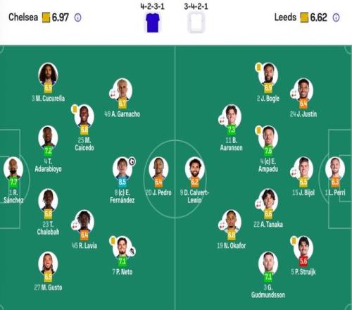 利兹联首发:1-佩利、2-杰登·博格、3-古德蒙德森、5-斯特鲁伊克、15-比约尔(46'6-罗登)、24-贾斯汀(46'18-施塔赫)、4-阿姆帕杜、22-田中碧(74'14-恩梅查)、11-阿伦森(86'8-朗斯塔夫)、19-奥卡福(74'29-尼翁托)、9-勒温