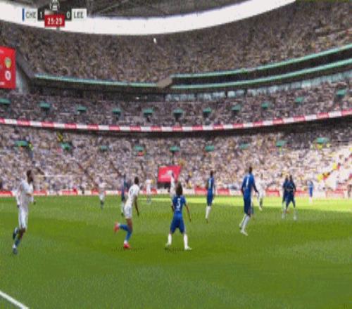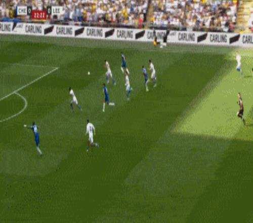 第15分钟,利兹联前场直塞,阿伦森绝佳单刀推射被桑切斯神勇挡出,切尔西逃过一劫。