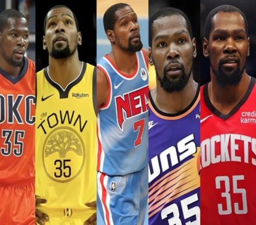 杜兰特职业生涯效力雷霆、勇士、篮网、太阳、火箭等队,仅在勇士搭档库里、汤普森拿到两座总冠军,其余阶段不仅成绩平平,还几乎和每支老东家都传出过不愉快。