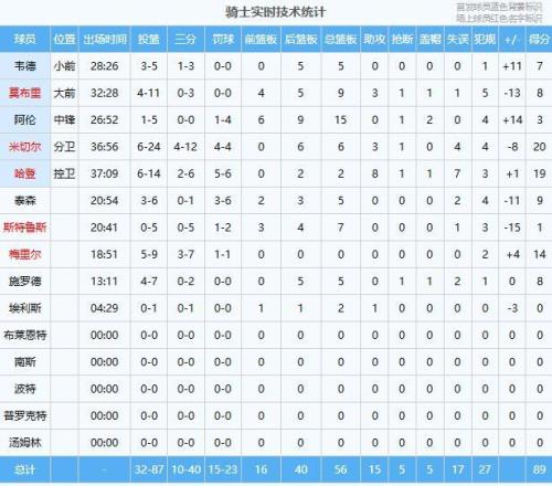 米切尔20分6板3助、哈登19分2板8助、梅里尔14分、泰森9分5板、莫布里8分9板3助、施罗德8分5板、韦德7分5板、阿伦3分15板2帽、斯特鲁斯1分7板