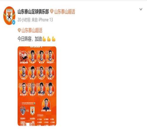 山东泰山官方只在这场比赛赛前发布了首发阵容,输球后俱乐部官方社媒没有更新。