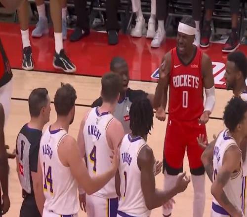 到了比赛最后一分钟,火箭的阿龙·霍勒迪和湖人的蒂耶罗爆发了冲突,打起来了,于是两人都被吹了技术犯规,被驱逐出场。