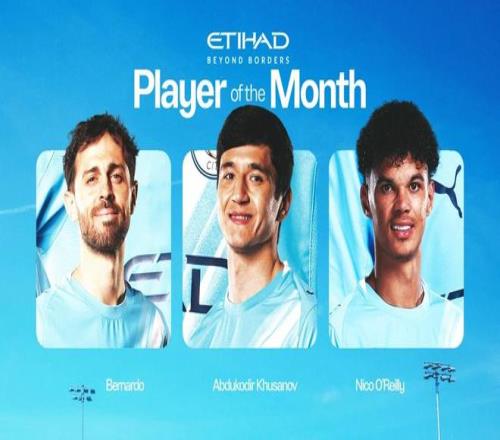 曼城官方公布了队内4月最佳球员候选名单,分别是伯纳多-席尔瓦、胡桑诺夫和尼科-奥赖利。