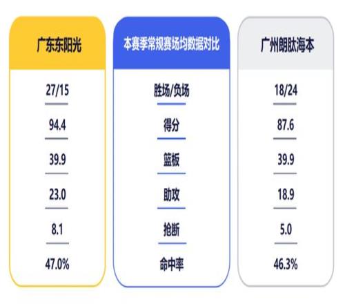 4月28日,CBA季后赛12进8比赛首回合,广东东阳光将坐镇主场迎战广州朗肽海本男篮。双方在常规赛有过2次交锋,华南虎保持全胜。