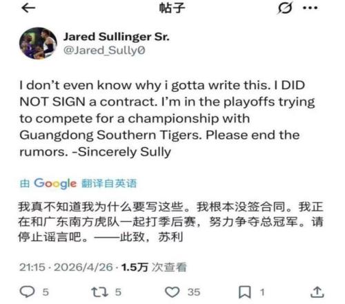 如今萨林杰在社媒辟谣,并且声称要与球队冲击总冠军,也希望他能够说到做到,在场上用实际行动为自己证明。