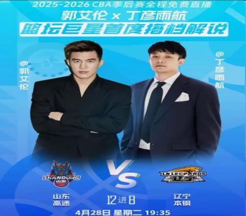 4月28日,CBA季后赛正式开打,广州男篮将客场挑战广东,而山东队则是坐镇主场迎战辽宁。据相关平台显示,郭艾伦将搭档丁彦雨航,解说山东与辽宁的比赛。