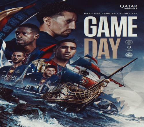 巴黎圣日耳曼官方社媒晒出了赛前海报,阿什拉夫、克瓦拉茨赫利亚、登贝莱、马尔基尼奥斯、卢卡斯出镜。