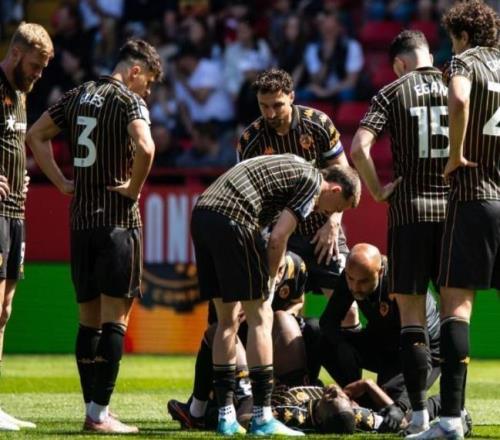 2026年4月25日,赫尔城客场对阵查尔顿,马塔佐苦等424天之后,终于重返绿茵场。主帅亚基罗维奇说,让他首发是一个“谨慎评估后的冒险决定”,球员本人、医疗团队、教练组,三方达成共识,所有人都小心翼翼地保护着这颗刚燃起的火苗。但是开场仅10分钟,马塔佐在客队禁区边缘突然倒地。没有对抗,没有剧烈冲撞,就那么倒下了。他试图坚持,短暂接受治疗后重新站上草皮。但职业球员的身体骗不了人,几分钟后,他被换下。下场时他向主帅示意“伤势不算严重”,也许那是他最后的倔强。随着核磁共振结果,像一记重拳砸在所有人胸口,马塔佐右膝前交叉韧带完全撕裂。