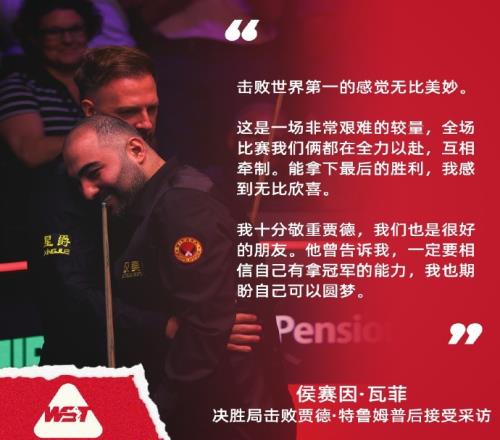 体育播报4月28日宣 斯诺克世锦赛16进8轮次,瓦菲13-12逆转特鲁姆普晋级8强,将战吴宜泽,他赛后接受采访时谈到了战胜特鲁姆普的感受。