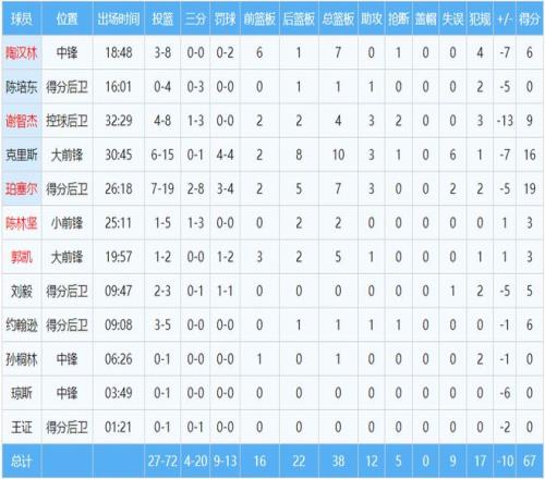 本场比赛,克里斯堪称山东队罪人,他虽然得到了16分,但15中6的命中率完全不符合内线球员的标准,更令人发指的是出现了6次失误(全队9次)。珀塞尔得到19分7篮板3助攻,在追分时段发挥了重要作用。国内球员无人得分上双,谢智杰9分4篮板3助攻,陶汉林6分7篮板。此外,主教练邱彪在季后赛中不合时宜地使用12人轮换,也引起了一些争议。