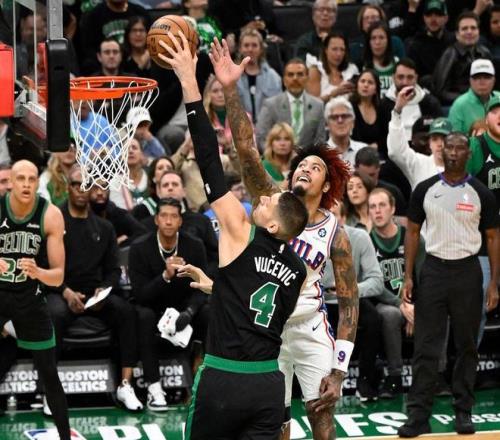 本场比赛,双方在首发阵容上面,凯尔特人这边塔图姆,布朗,怀特,豪瑟,克塔。76人这边派出的是,恩比德,乔治,乌布雷,马克西和埃奇库姆。首节比赛开始,76人率先拿到球权,乔治的追身三分开火一击命中,打进本场比赛首个进球,怀特单枪匹马杀进篮下抛投出手,也为绿军开张,乌布雷扛着篮球横冲直撞擦板命中,乔治丝滑运球,漂移三分张手就有,马克西高难度的翻身中距离也拿下两分,克塔禁区吃饼,高举高打攻筐上篮命中,布朗的后撤步干拔跳投空心入网,首节比赛两队都以内线进攻为主,还没有找到外线状态。