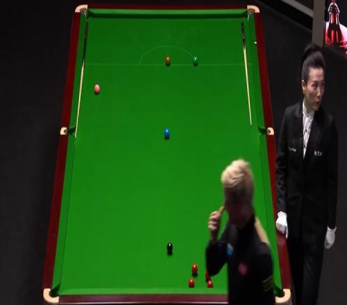最终在56分钟的乱局拉扯下,罗伯逊拿下本局,以5-3的比分暂时领先希金斯结束第一阶段