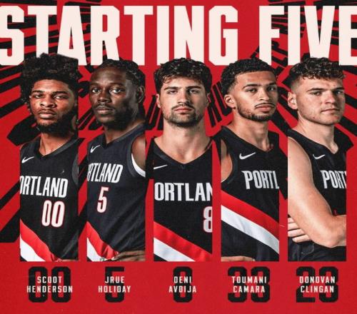 首发阵容方面,开拓者队这边,利拉德(跟腱撕裂)缺席,主帅排出的首发五人组为:亨德森、霍勒迪、阿夫迪亚、卡马拉、克林根;马刺队这边,只有边缘球员麦克劳林缺阵,首发阵容则为:福克斯、卡斯尔、瓦塞尔、尚帕尼、文班亚马。