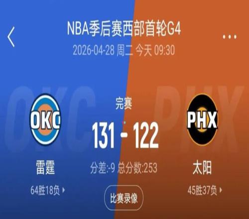 终场哨响,雷霆以131-122客场奏凯,总比分4-0干净利落淘汰太阳,强势锁定西部半决赛席位;太阳则成为2025-26赛季NBA季后赛首支折戟首轮的队伍。