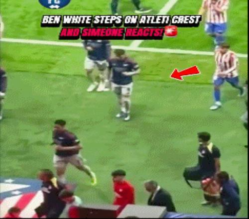 这次冲突源自于本-怀特在离场返回球员通道时,没有绕开马竞队徽,而是毫无顾忌直接踩了上去。