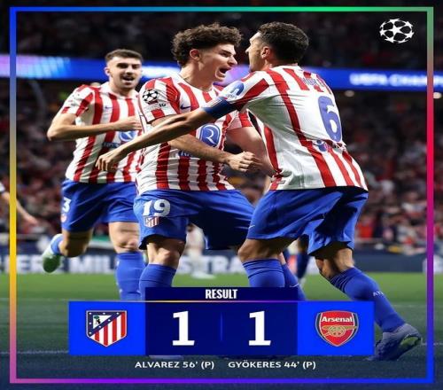 北京时间4月30日3点,25-26赛季欧冠半决赛首回合,马德里竞技坐镇主场1-1战平阿森纳,分别攻入一粒点球,演绎了与巴黎5-4拜仁截然不同的较量!