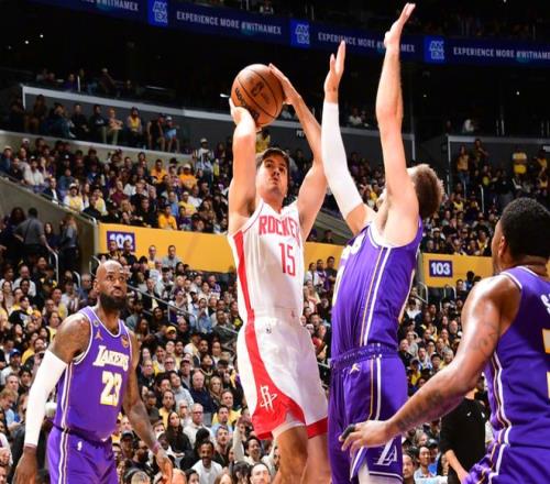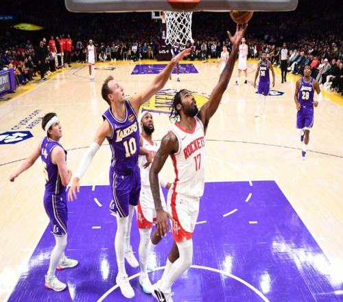八村塁和伊森对轰三分,半场湖人47-51火箭!进入下半场,里夫斯连续造杀伤,一个人打四个人看。火箭则依靠谢泼德和伊森内外开花,更像是一个整体。申京低级传球失误,但小贾续上三分,八村塁联合老詹追分,危急时刻霍勒迪和申京连拿7分止血。后半段双方维持10分左右陷入拉锯战,三节打完,湖人67-76落后火箭。决战第四节,里夫斯继续罚球,阿门也命中底角三分,随后小贾三分打停火箭!詹姆斯和艾顿连追四分,阿门造杀伤,申京高难度后仰抛投!中段詹姆斯内突外投,联合八村塁追到只差6分。