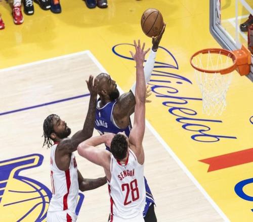 下半场比赛,伊森上来偷袭投篮打进,里夫斯造犯规罚球连拿4分,回来谢泼德命中3分,伊森底角追身3分也进,湖人接连进攻不中,小贾造犯规罚球2中1,火箭取得9分领先。随后詹姆斯翻身跳投打进2分止血,小贾切入跳投拿2分,里夫斯罚球2中1,小贾追身3分命中,八村塁攻筐对抗申京强硬得2分,詹姆斯连罚带突拿4分,分差缩小至5分!随后,霍勒迪抛投拿2分,艾顿补篮拿2分,申京突艾顿后仰出手弹进2分,艾顿切入上篮得手,霍勒迪命中3分,申京罚球拿2分,火箭领先10分。肯纳德罚球2中1,阿门突分助奥科吉扣篮拿2分,拉拉维亚顶开阿门打进2分,三节打完,火箭76-67领先湖人。