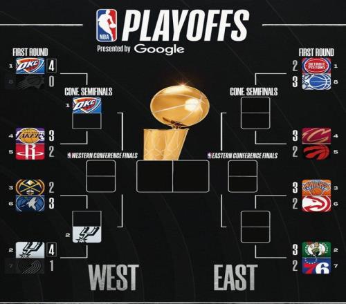 经过小半个月的争夺,NBA首轮进入白热化阶段,东西部8组对抗中雷霆4-0横扫太阳率先晋级,马刺紧随其后4-1绅士横扫开拓者,其余6组对话均打成大比分3-2焦灼状态。